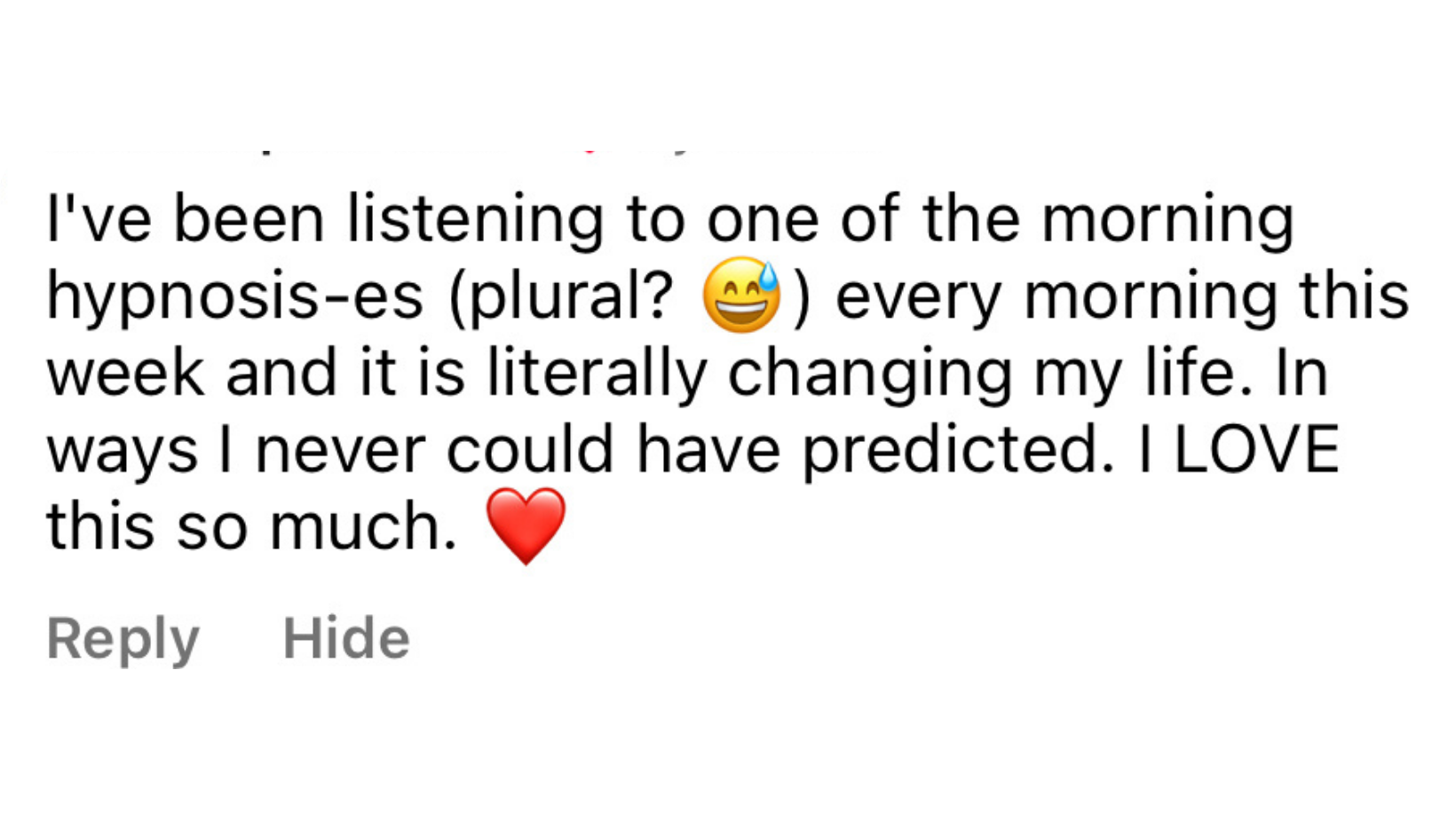 Hypnosis is a science-backed, relaxing, imaginative process that allows you to control your own mind by quieting your inner critic, accessing who you really are, and creating lasting change from the inside out.