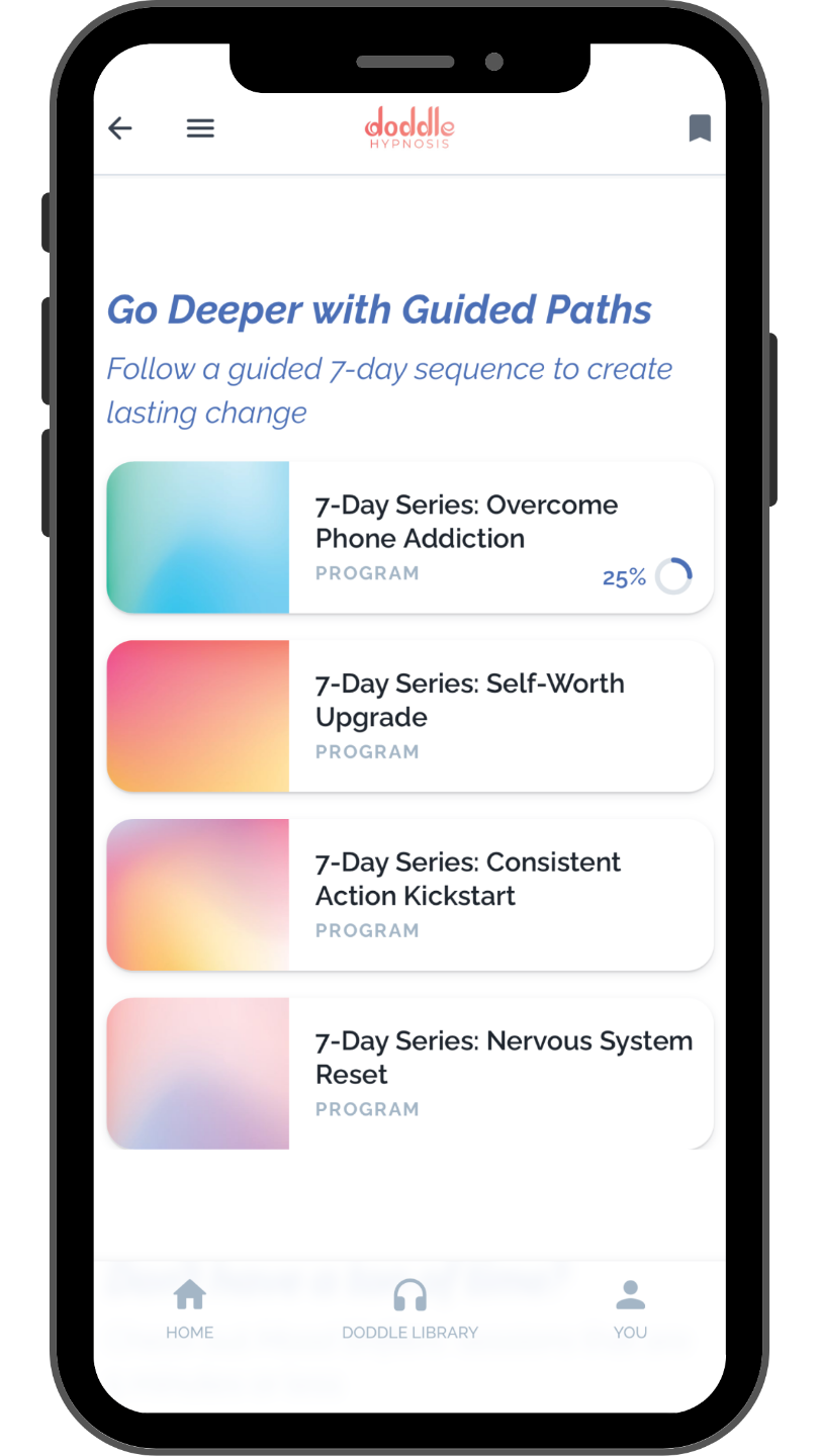 Set your intention, press play on a Doddle Hypnosis session, and get ready to transform & level up. Sessions range from 90 seconds to 30 minutes to seamlessly fit your unique schedule.